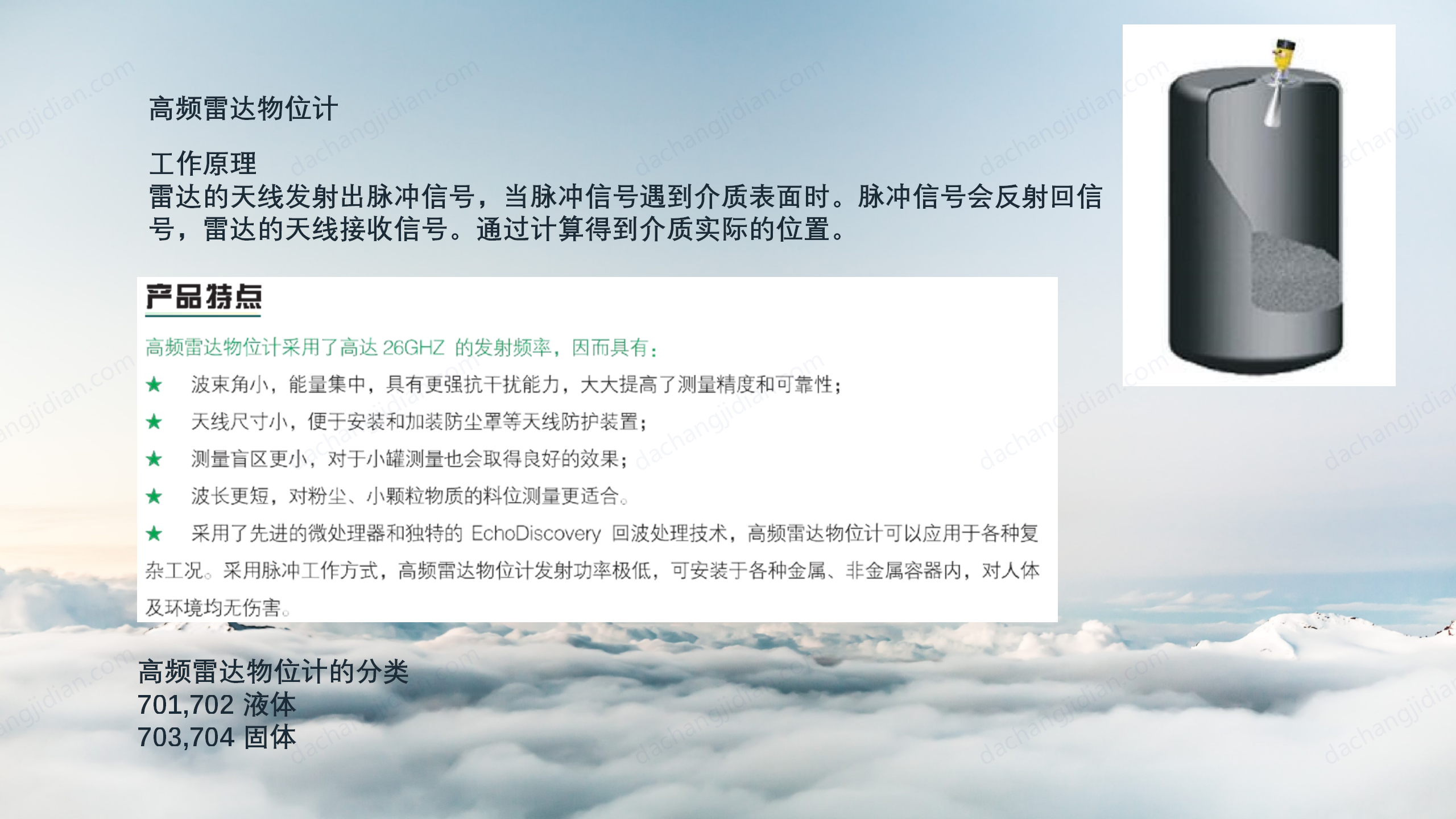 高頻雷達物位計 智能雷達物位計 導波雷達物位計 射頻導納物位計 調頻連續波物位計